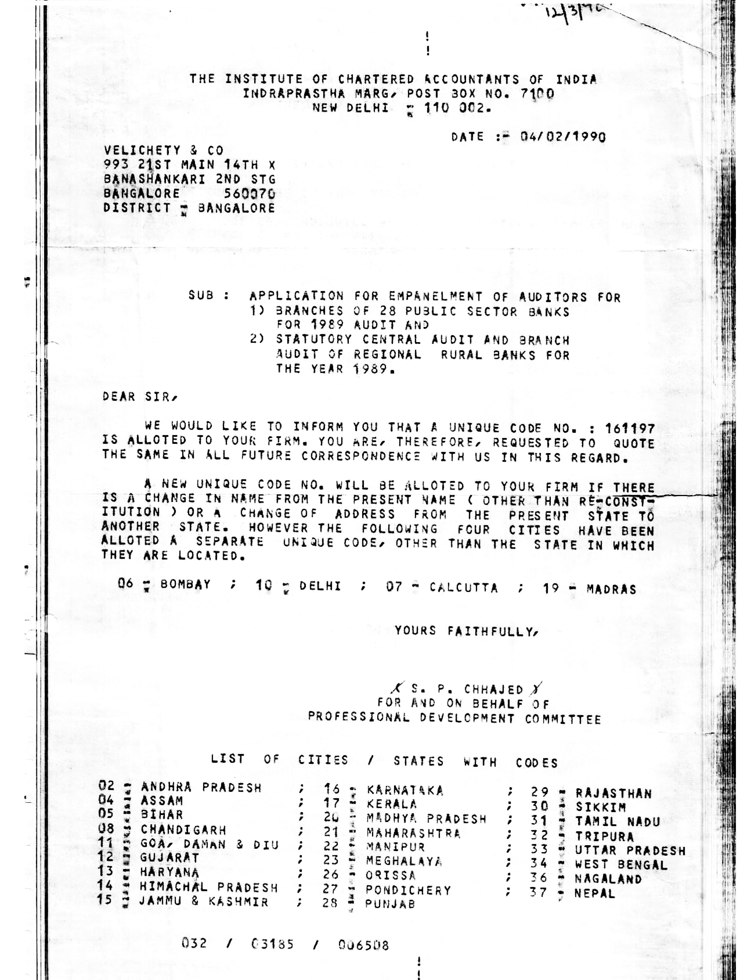 M/s Velichety & Co Chartered Accountants Click here to view Firm's Constitution Certificate Click here to view RBI Empanelment Click here to view C & AG Empanelment